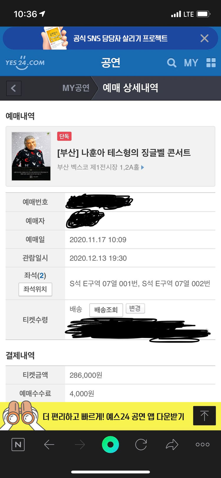 수고비 장당 이만원 받구요 공연취소시 이유불문하고 수고비제외 모든 금액 환불 됩니다 뱌송지변경으로 거래 하겠습니다