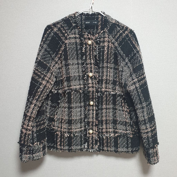 미쏘 구매 트위드 재킷입니다. 일자핏으로 넉넉하게 입을 수 있습니다. 두께감 있습니다. 사이즈는 s사이즈 인데 조금 여유있는편이에요. 주머니 있습니다. 몇번 입지 않아서 사용감 많지 않아요.