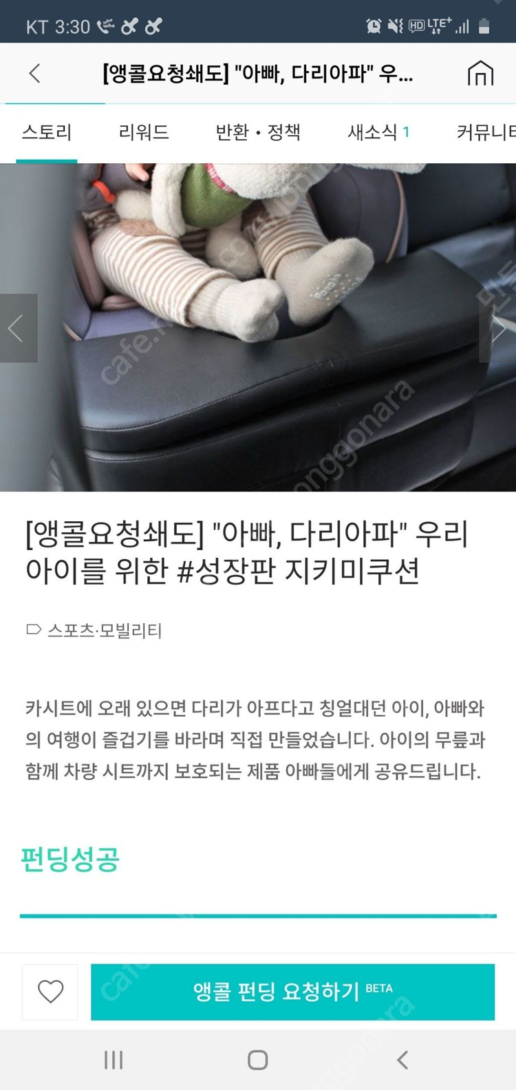 와디즈펀딩에서 판매했던 아빠다리아파 카시트발판 (성장판 지키미쿠션) 미개봉 새상품 판매합니다