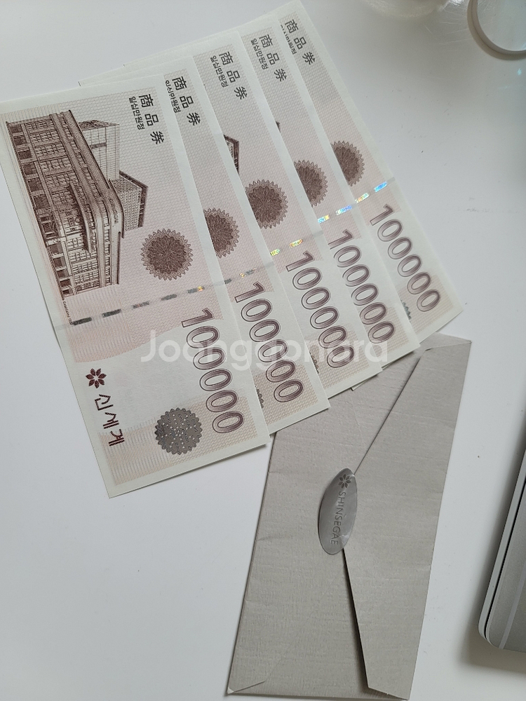 신세계 상품권 10만원짜리 5장, 일괄판매합니다. 직거래시 강남역 또는 신사동 부근. 010-6899-공사일공