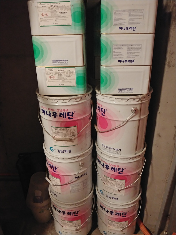 옥상 우레탄 방수제입니다. 2017년 구입 후 새제품 그대로(미개봉) 창고에 보관중입니다. 기일이지나 가격 저렴하게 올립니다. 2액형이라 사용하는데는 이상없으리라 판단됩니다. 제품은 강남화성의 하나우레탄입니다 세트20KG(경화제HB-240KS:16KG+주제TP-240:4KG)당 5만원입니다. 현재 108,000원에 파는 제품입니다. 지역은 대전이고 12세트 중 5월31일 2세트, 6월4일 2세트 판매하고 현재 8세트 보관중입니다. 전부 구매하시면 약간의 네고 가능합니다. 연락처: 010-오삼일공-7500