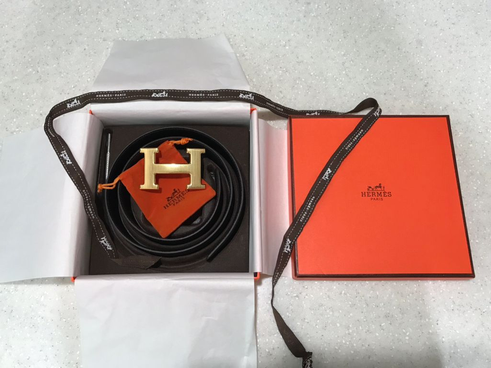 에르메스 H스트라이프 금장 버클 블랙 양면 길이-85.5cm