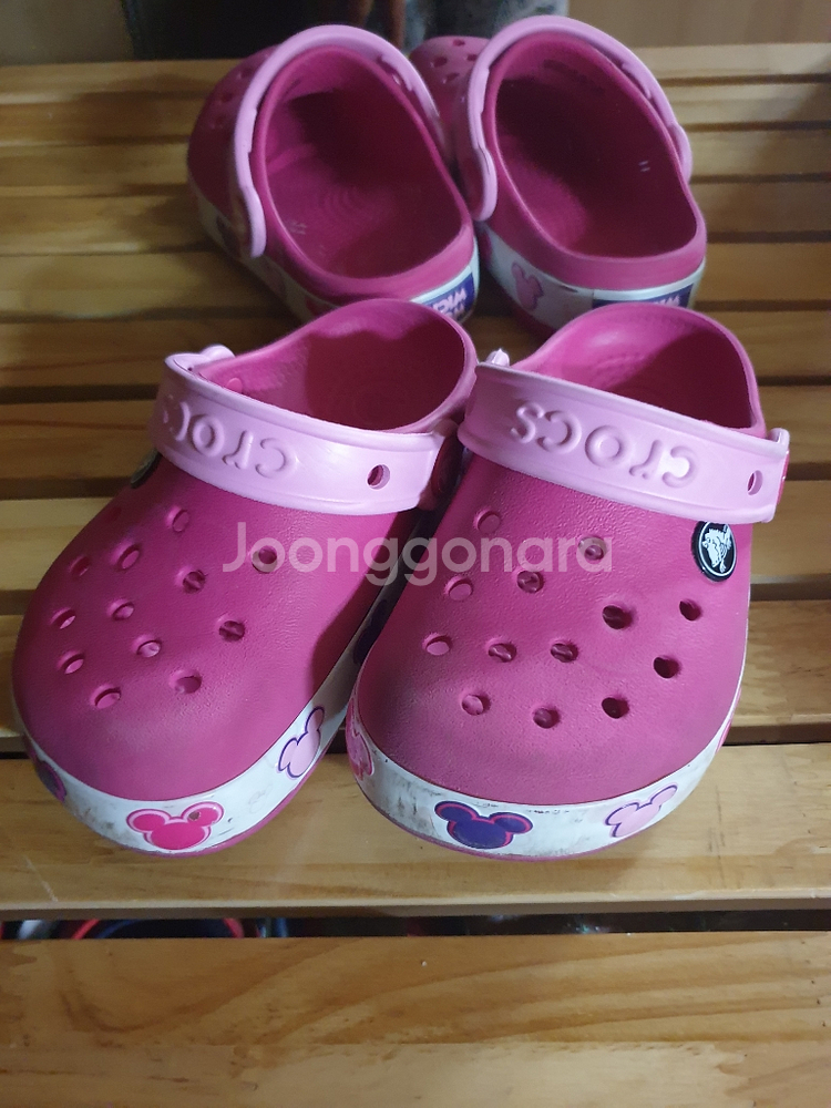 크록스 미키마우스 분홍색 샌달 C9 =155사이즈 밑단에 블 양쪽 다 들어옵니다. 상태 양호합니다. 직거래 : 서울 5호선 송정역 택 배 : 선불 3,000 / GS 반값택배 가능 문 의 : 1:1 채팅