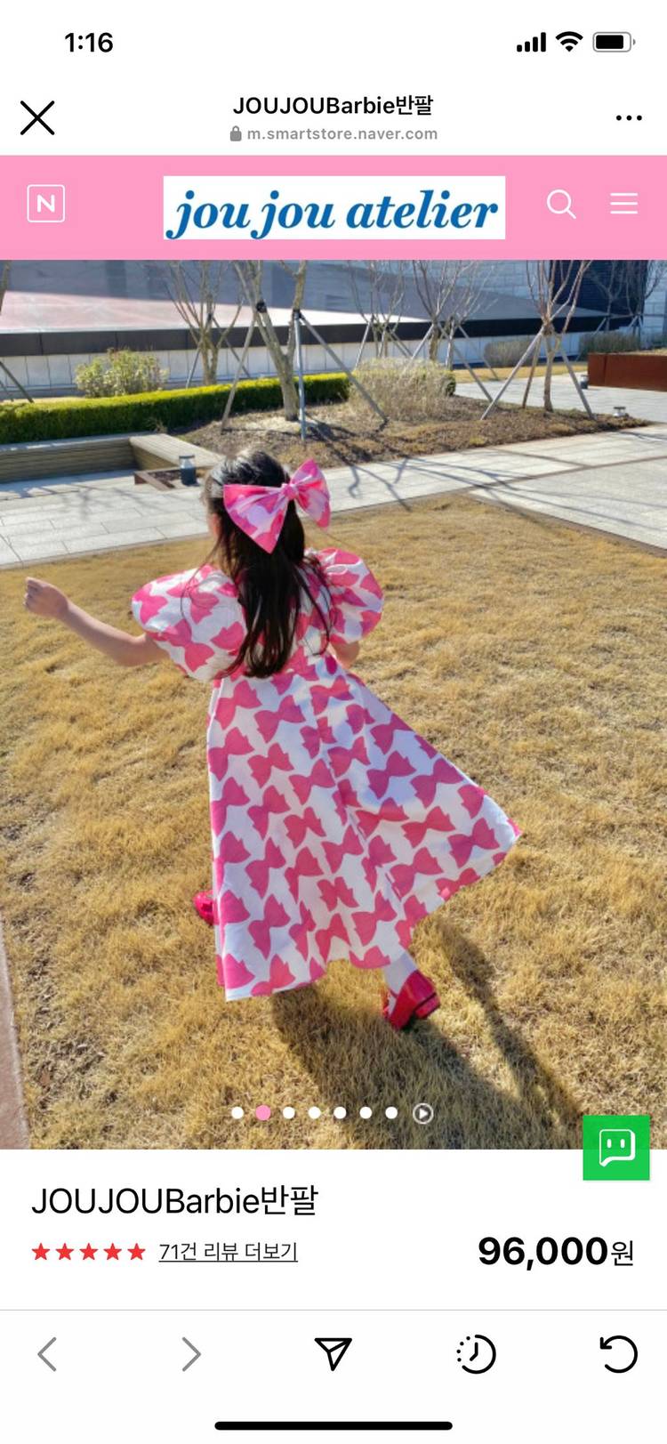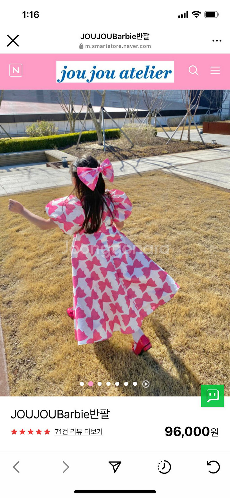 주주 아뜰리에 바비 드레스 반팔버젼입니다. 라지 사이즈에 1회 착용후 보관중입니다.