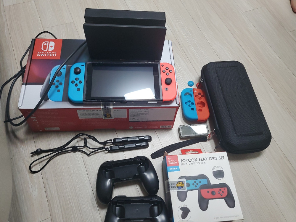 닌텐도 스위치 2018년12월 제조상품입니다 모두 다 해서 28에팝니다 상태는 모두 최상입니다~ 조이콘 그립세트와 올인원 스타터 키트 모두포함입니다 직거래 모현읍 오산리입니다