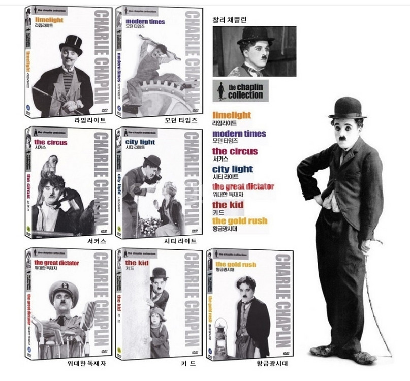 새상품 [DVD] 찰리 채플린 베스트 컬렉션 7편 - 라임라이트, 모던타임즈, 서커스, 시티라이트, 위대한 독재자, 키드, 황금광 시대 (각 개별 포장) 배송비 별도 3000원
