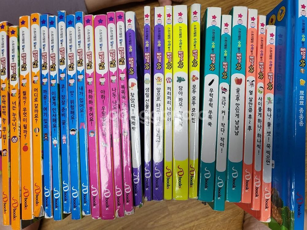 돌잡이수학12권, 돌잡이한글13권 일괄판매해요 돌전무렵부터 두돌까지 읽기 좋은책인거 같아요 사진찍어서 올리지만 아이들이 사용한거라 찢김 일부 분실이 좀 있습니다 CD는 한글3장 수학4장 입니다 CD는 수학 한개 빼고 전부 사용 안했어요 쿨거래O 예민맘 사절X 구매하실분만 연락주세요