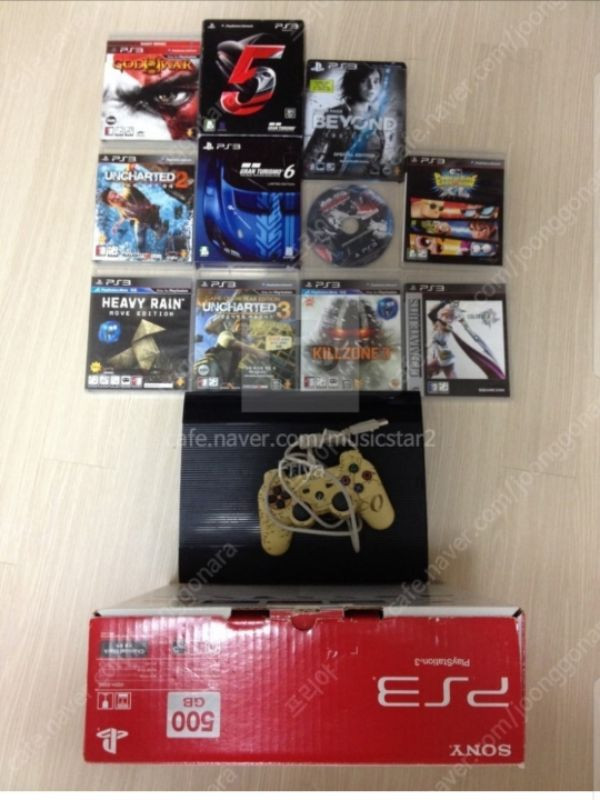 ※※ 일괄 묶어서 판매 합니다. 고성능 PS3 CECH-4005C 500GB 팝니다. 생활기스 제외하고 상태 AA 급 입니다. (풀박스) 패드는 언차티드 리미티드 무선 입니다. 기기안에 GTA5 설치되어 있습니다. 직거래 경남 마산,창원,진해, 전남 여수, 순천 입니다. 각개 판매하지 않습니다. 010-3201-1591 연락주세요. 보유 타이틀 : 갓오브워3, 그란투리스모5, 그란투리스모6, 비욘드투소울, GTA5, 언차티드2, 언차티드3, 헤비레인, 킬존3, 철권 태그 토너먼트, 파이널판타지 13
