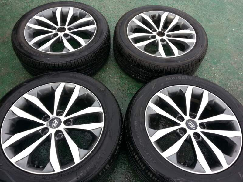 215 55 17 4개 장착 금호 마제스티 2개 약 80% 금호 출고용 2개 약 70% 휠 2개는 생활 및 주차 기스 조금 있습니다.