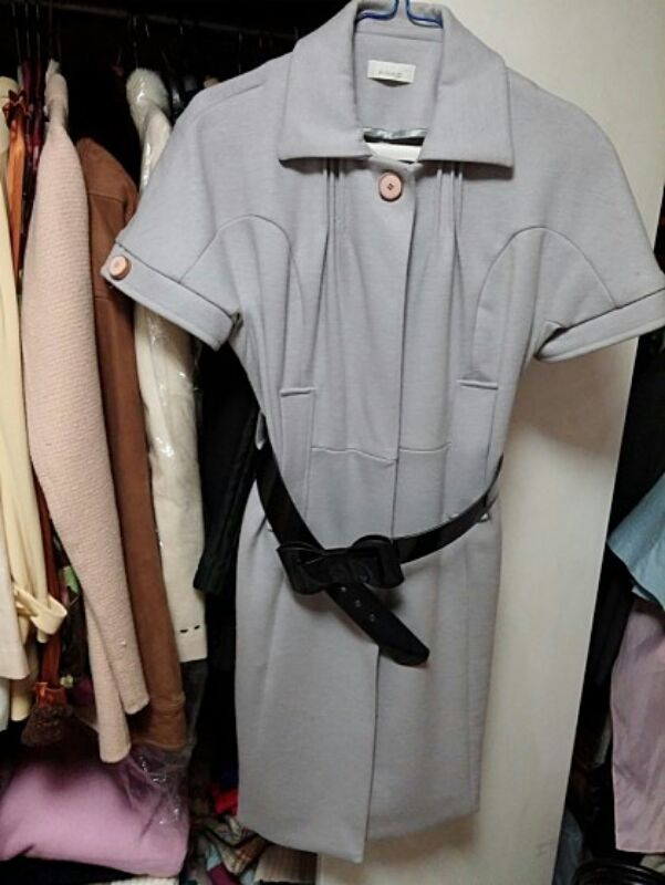 이태리 PINKO 그레이 모직 반팔 원피스 코트 S사이즈 쌀쌀할때 속에 폴라를 입고 코트처럼 걸치는 모직 반팔 원피스 바바리코트로 오픈해서도 가능 무겁지않은 플레티늄 그레이 컬러 벨트 세트 소재 버진울 100% 엄청 가볍고 보온성 좋음 3번내 착용 삼만원 교환환불 불가