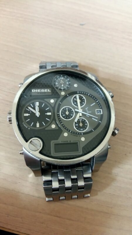 시계 안에 4개 있는데 1개만 약 있고 나머지는 약이 없어요 오른쪽 큰 시계 조정 나사 고장이고여 액정에 금 가있어요 시간보는데 큰 지장은 아니고 그냥 전투용이나 패션용으로 쓰실 분 사가세요 원가 40인가? 백화점에서 샀는데 험하게 썼네요 ㅠ
