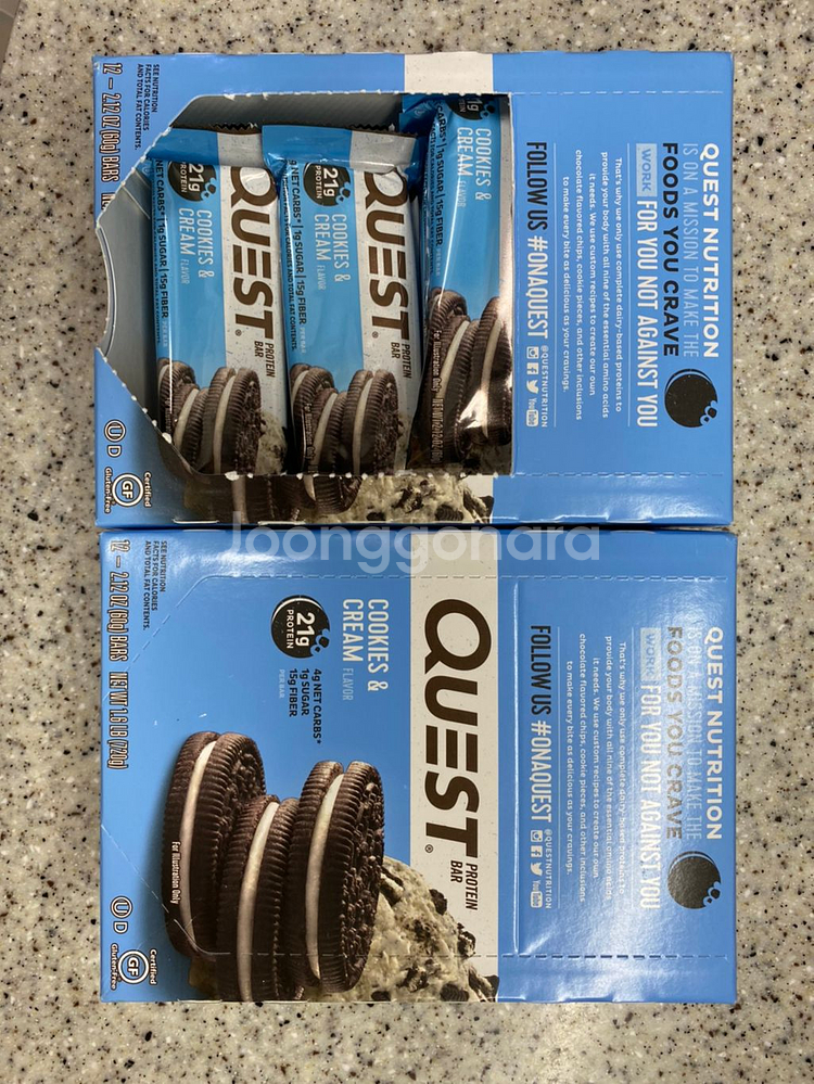 퀘스트바 프로틴 쿠앤크맛 12개 미개봉 1박스 + 개봉 10개 1박스 총 22개 일괄로만 팝니다. 유통기한은 넉넉합니다.