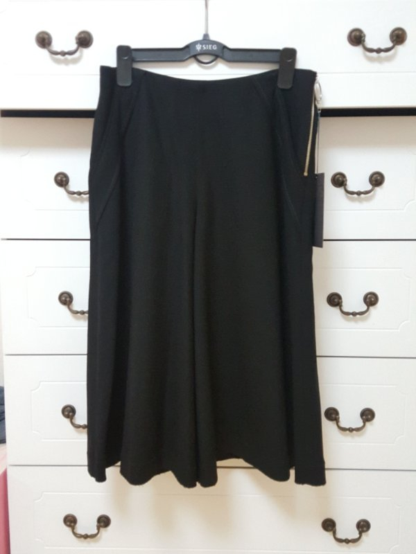 얼마 전 구매한 시스템 스커트같은 느낌의 와이드팬츠에요. 55사이즈이고 총장은 66정도, 한섬 옷 44를 입는데 치마같은 바지가 필요해 구매했다가 커서 못입어 내놓아요. 타임팬츠 44입고 청바지 26 입는데 반주먹 정도 들어가네요. 참고하세요. 새옷이고 아무 흠 없지만 예민한 분은 피해주세요.
