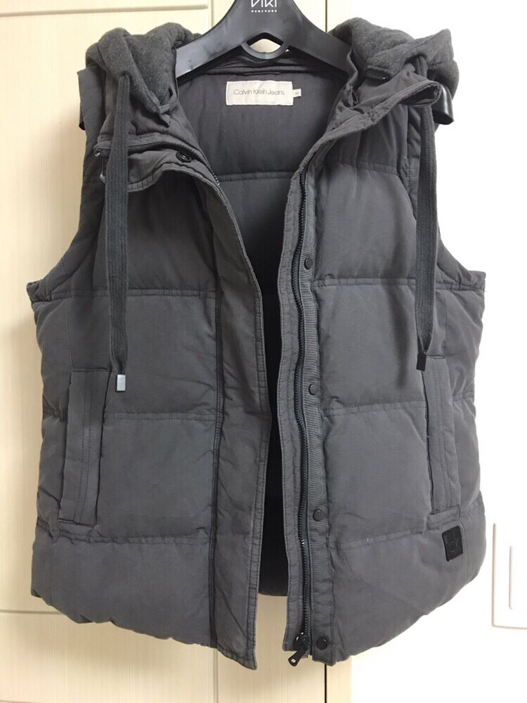 캘빈클라인 오리털 조끼 -사이즈: M(55) -총기장:52(엉덩이 반정도) -보풀 없음(실착용 :2회) -색상은 진회색(사진은 좀 연하게 나왔네요;) -모자 탈부착가능 #교환x환불x
