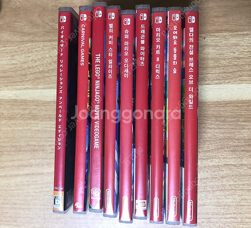 👆 중고나라에서 스타벅스&GS25 드리는 거 아시나요? ...더보기 버튼을 눌러 확인해 주세요 ---------------------------------------------- 안녕하세요. 그동안 구입만 하고 거의 플레이하지 않았던 스위치 게임 일괄 판매합니다. 게임 목록은 총 9개 타이틀이며 아래와 같습니다. 젤다의 전설 야생의 숨결 마리오카트8 디럭스 별의커비 동물의 숲 마리오 오디세이 드래곤볼 파이터즈 카니발게임즈 바이오하자드 레벌레이션스 닌자고 무비 일괄로 34만원(택배포함)에 판매합니다. 스위치를 구매하시고 성인과 아동을 고려한 리스트입니다. 문자 연락주세요. 감사합니다.