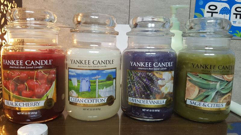 양키캔들 라지자 라벤더바닐라,세이지시트러스 새상품 클린코튼 1회 워머 사용 블랙체리 1센치정도 사용감있어요 일괄 택포 6만5천원