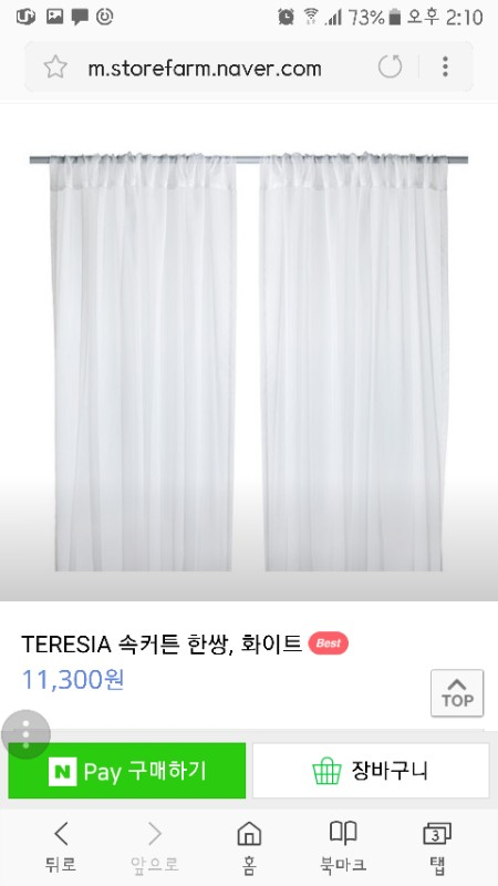 이케아 속커튼 TERESIA (145*250 - 2장) 화이트 팝니다. 구매 후 시착만 해본 새상품입니다. 봉에 끼워만 본 것이라 커튼핀 자국도 없어요. 택포 11,500원이구요, 위례동 직거래도 가능합니다.