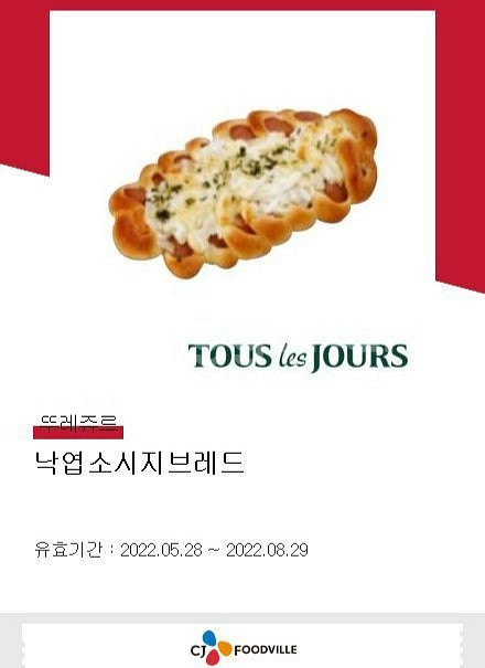 뚜레쥬르 낙엽소세지빵 기프티콘 유효기간 8/29까지