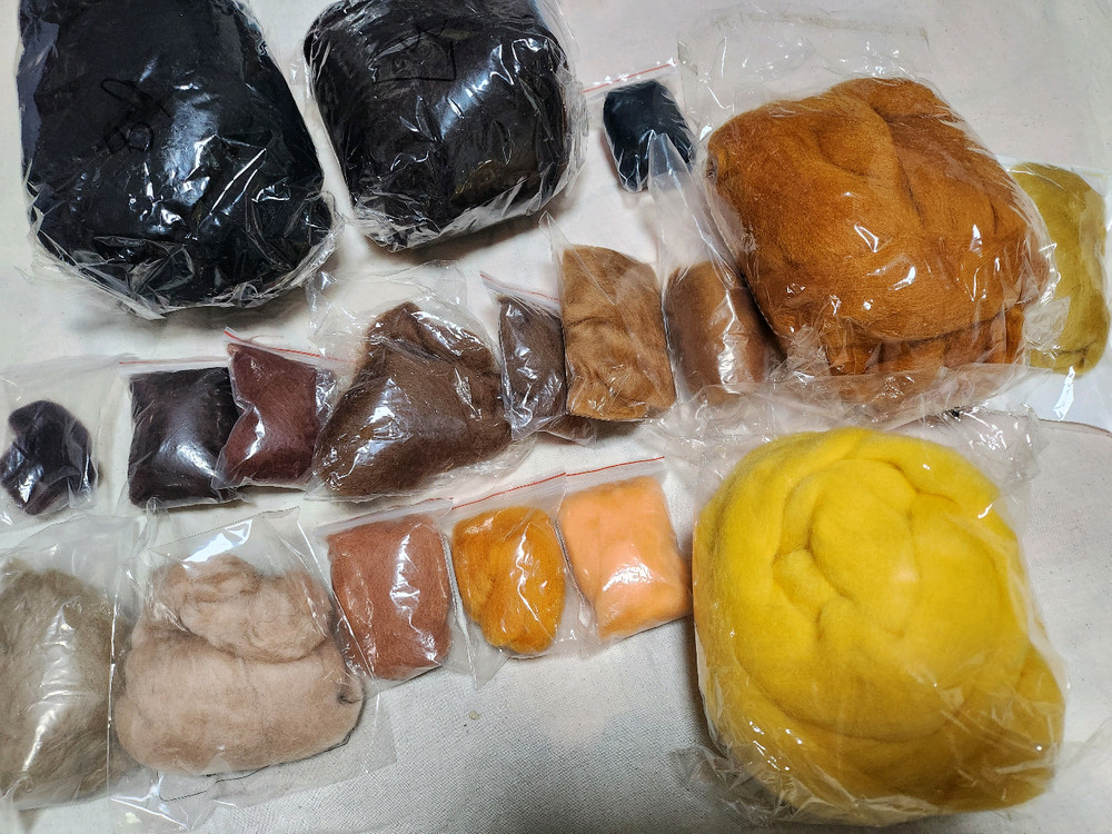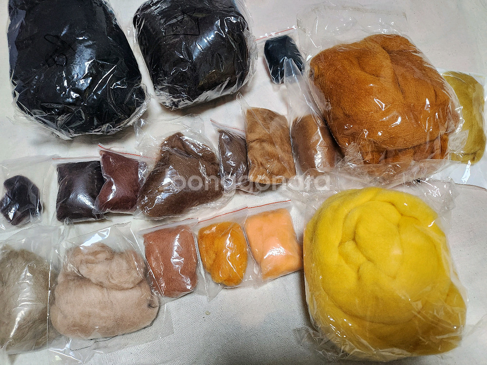 원하는 색상을 표시해주시면 10g 천원에 팝니다~10g 안되는 색상은 다른 색상과 함께 가능해요 마지막 사진 보시면 양모니들펠트지도 있습니다 압축된 상태로 나와서 찌르는 횟수를 줄여줘요 ~ 이건 1장 1만원입니다 가죽골무 1개 천원 양모펠트바늘 2개 천원 도 팝니다