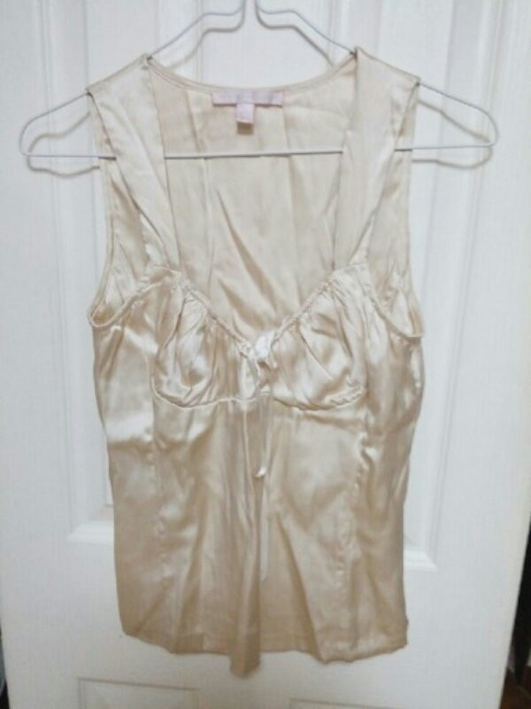 레베카 테일러 크림색 실크 탑블라우스 압구정 제이로즈로코에서 구입 사이즈 4 국내 S사이즈 가슴라인에 조절 끈이 있고 실크 95% 스판 5% 혼방 탑도 수입 디자이너 옷이면 핏이 달라요 실크 100% 고가 의류 옷장 속에 들어가있어 주름이 있어 저렴하게 판매 새상품 택포 5만원 교환환불 불가