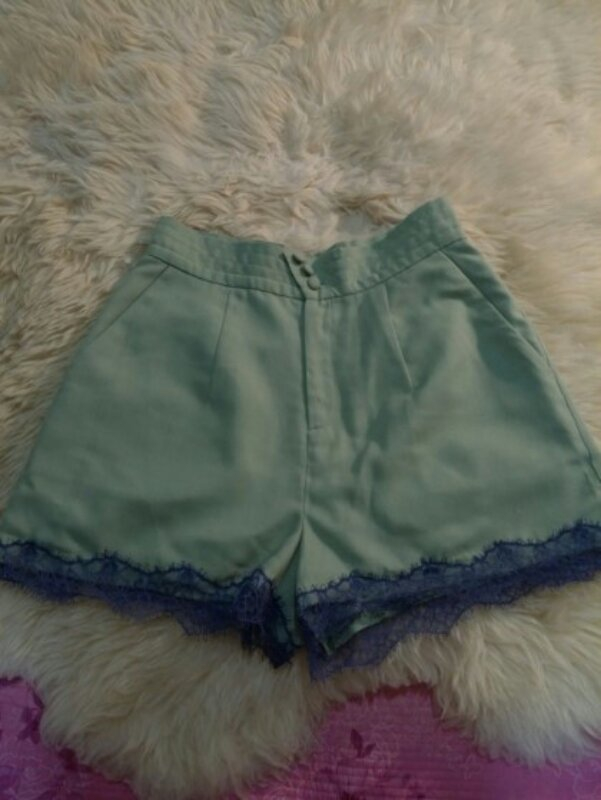일본 LILY BROWN 민트 레이스 반바지 55사이즈 일본 20대 여성들이 좋아하는 미니멀하면서 큐트한 브랜드 한여름에 시원하게 입는 얇은 소재의 민트그린 반바지 밑단에 블루 레이스 섹시 귀여움 주머니 안감 있슴 폴리에스테르 72% 레이온 18% 1번 착용 거의 새상품 택포 2.5만원 교환환불 불가
