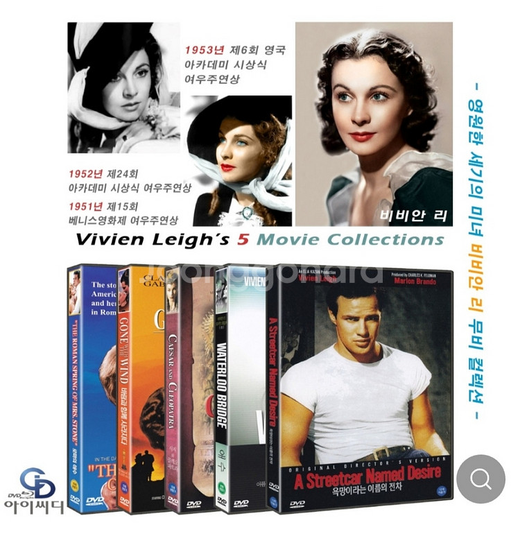 [DVD] 영원한 세기의 미녀 비비안 리 무비 컬렉션 5편 - 로마의 애수 + 바람과 함께 사라지다 + 시저와 클레오파트라 + 애수 + 욕망이라는 이름의 전차 ( 미개봉, 각 개별 포장 )