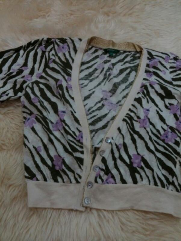 베네통 베이지 지브라 반팔 가디건 55사이즈 95-165 44 실측 55사이즈 면 80% 마 20% 목라인은 금사 럭셔리한 가디건 새상품 2.5만원 교환환불 불가
