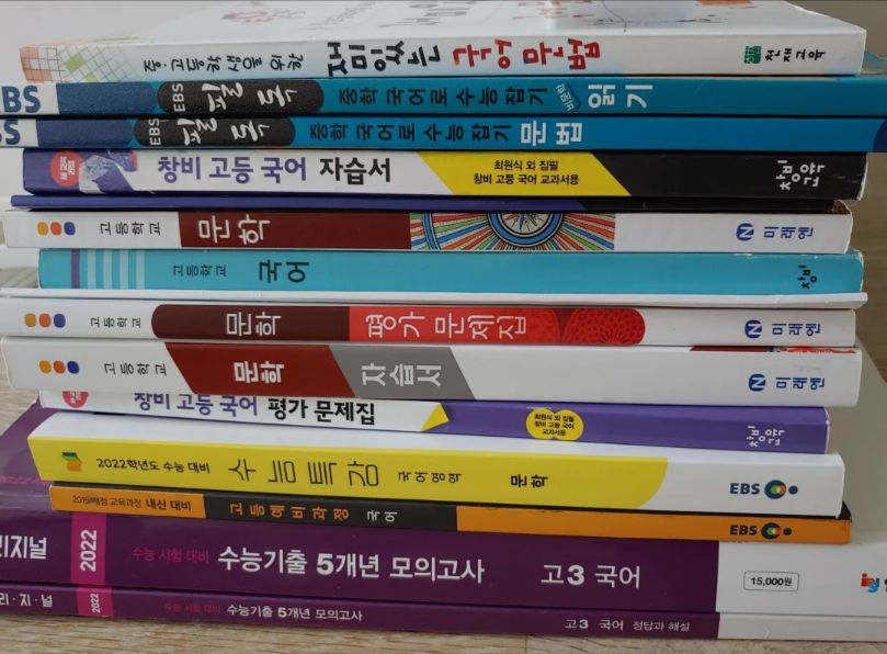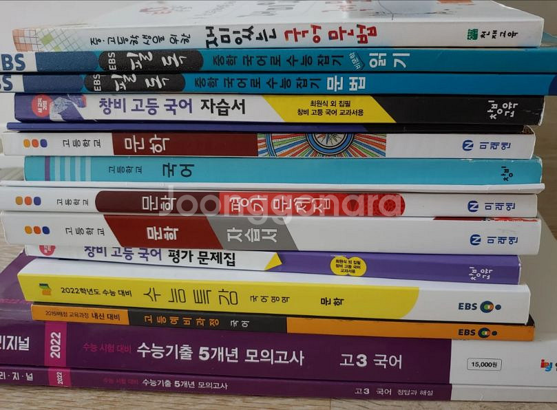 중학생 고등학생 국어 문제집 팔아요! 모의고사 수능특강 자습서 평가문제집 교과서 문법 읽기 등등 다 있어요! 사용감 책마다 달라서 사용감 있는건 싸게 싸게 팔아요!