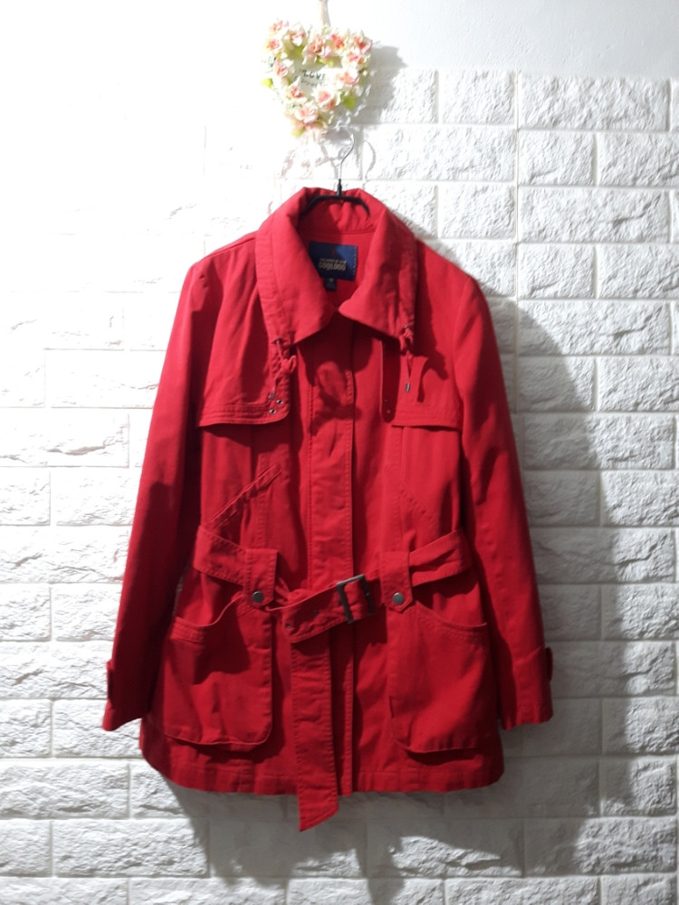 쿨독 레드컬러 야상 95호입니다 사진은 밝게 나왔는데 살짝 어둡습니다 가둘 94 기장 72센치입니다 끈은 제가 예쁘게 못 묶어서 걸어서 찍었읍니다 반품 교환 환불 사양하오니 신중하게 구매하시기바랍니다
