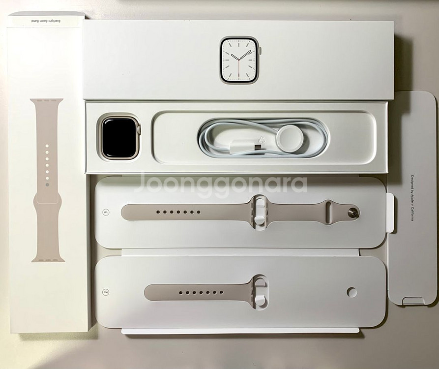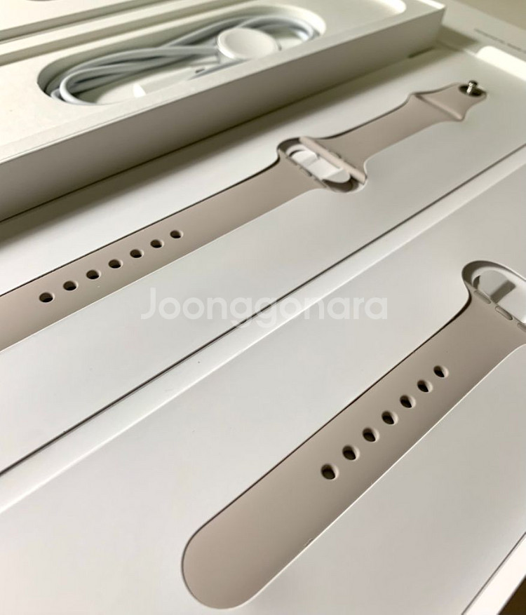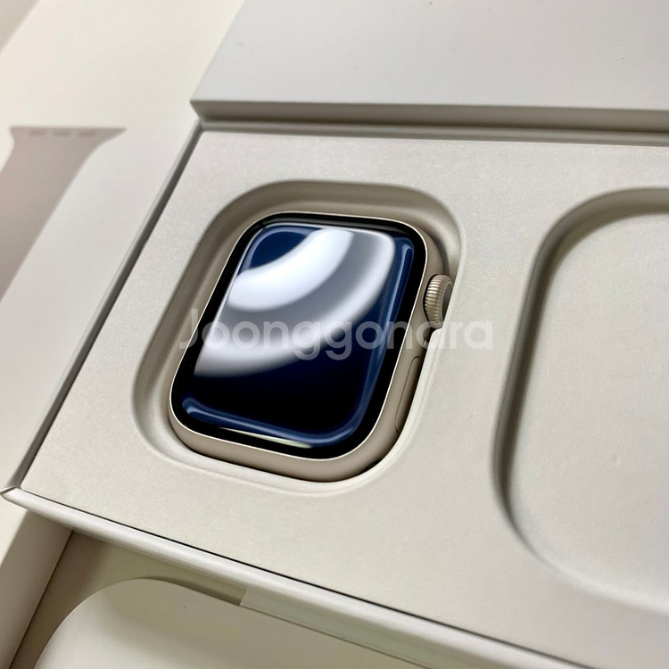 애플워치7 41mm GPS 스타라이트 (새상품) 며칠 전 배송받고 단순개봉 후 미착용한 제품이며, 당연히 사용감 0입니다. 모든 구성품 패키지 그대로 입니다. 과천/신용산 직거래 또는 택배거래 가능
