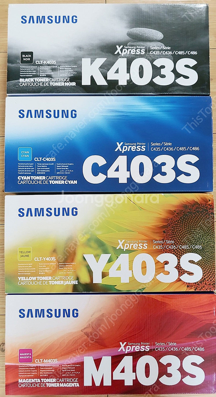 삼성 미개봉 정품토너 CLT-K403S, CLT-C403S, CLT-Y403S, CLT-M403S 1SET 판매합니다. 개당 착불 3.3만입니다. 모두 구매하시면 택배비 제가 부담해서 13만에 발송드리겠습니다. 010 5037 4320 문자주세요