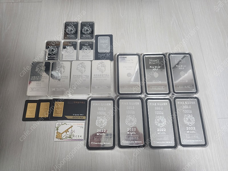 한국표준금거래소 4개. 대성금속 4개. stone X 3개 합 11개 현금거래로 판매합니다. 쪽지확인은 어려우니 문자연락주세요