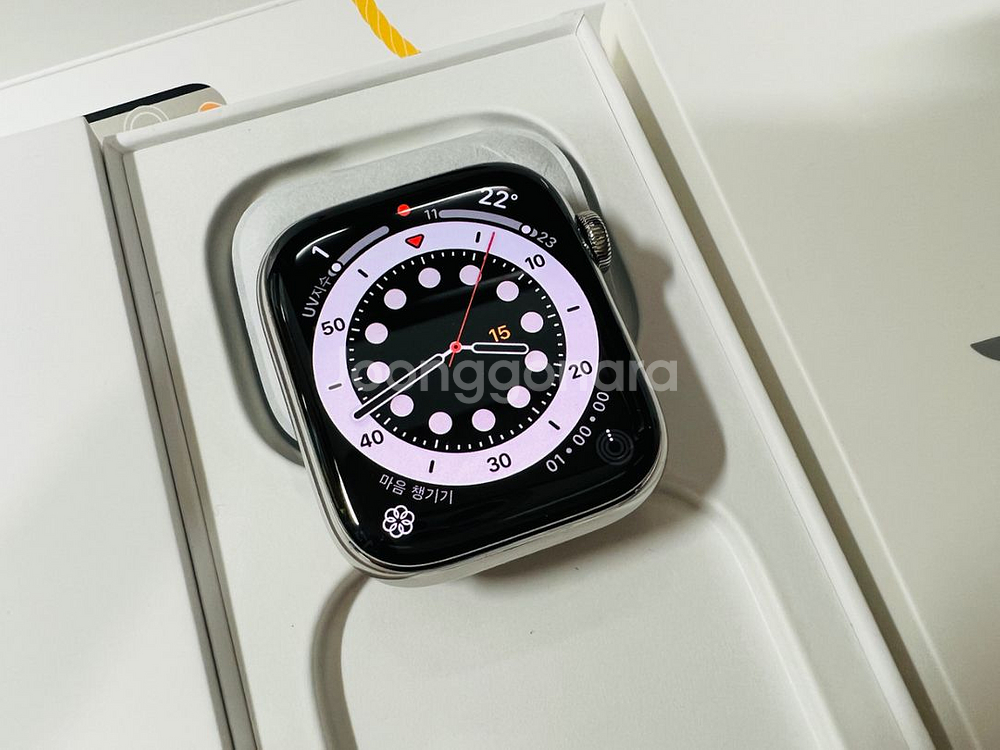 3451님 거래용 안전결제 애플워치7 스테인리스 실버 45mm 셀룰러 +정품 스포츠밴드 부속,박스 전부 있는 풀박스 자급제 구입 정상공기기 구입 21년 10월 말 (배터리 94%) 워치앱 페어링 및 나의찾기 전부 삭제후 초기화 액정기스,찍힘 없고 실버 특성상 미세한 잔기스 정도 티타늄으로 기변하려 판매합니다 직거래 - 마장역 택배 - 우체국 (파손면책/환불불가)