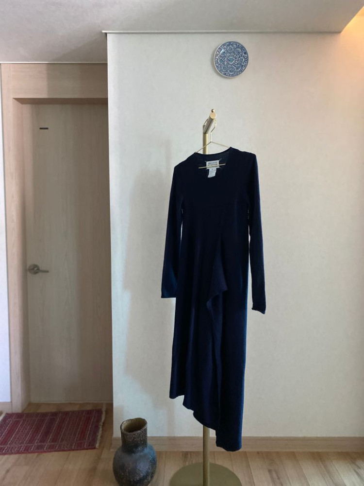 메종 마르지엘라의 네이비 컬러 라나울 100% 원피스입니다. 사이즈는 S, 소매와 어깨, 가슴 등 상체 부분 타이트해요. 가을, 겨울 멋스러워요. 착용감 다소. 문의 주세요.
