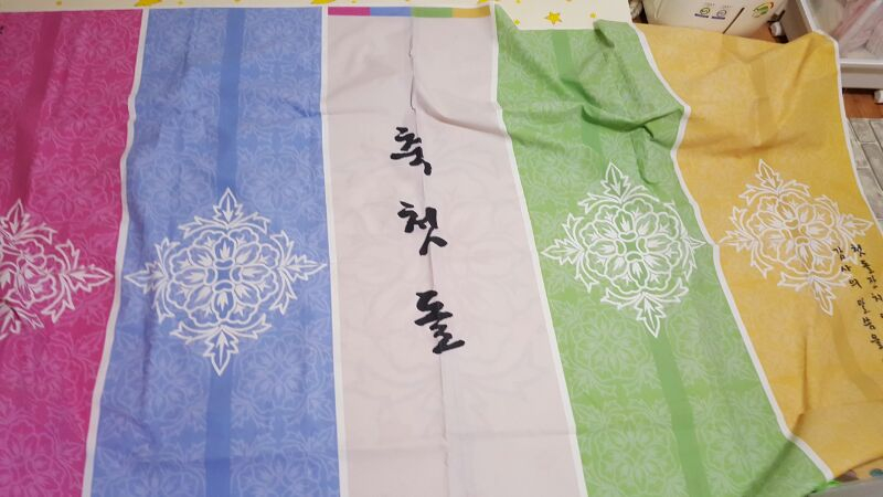 현수막사이즈240×140정도되는거같아요 전통테이블보전체용이랑포인트용 사진에보이는거전부택포18,000원