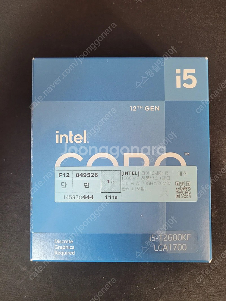 인텔 cpu 12600kf 팝니다. 사용하던제품으로 업글로 판매합니다. 택배 착불로 보내드립니다. 12세대 소켓가이드(+5천원추가) 말씀하시면 같이 보내드립니다. 문자부탁드립니다.