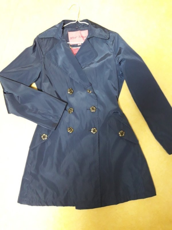 Betsey Johnson 벳시존슨 로즈 버튼 트렌치 코트 55사이즈 다크 네이비 컬러 약간 새틴 소재 더블 카라 미들 기장 앞면에 우아한 로즈 메탈 6버튼 주머니에도 로즈 버튼 가벼우면서 훈훈한 바람막이 겸 비올때 레인코트로 발수기능 허리 뒷리본 앞으로 묶을수있음 오만원 교환환불 불가