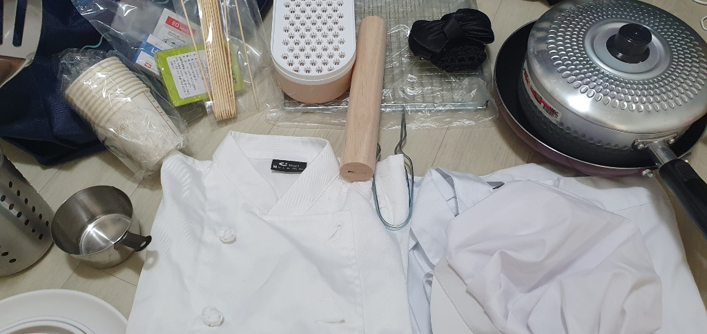 실기시험 직전에 구매하여 한번에 합격했어요 냄비 후라이팬 망은 한두번 연습했고 꼬치와 완자탕이 나와서 그에 관련된 재료 한번 사용 말고는 전부 새거입니다 칼집에 칼도 포함이구요 조리복 조리모도 포함 실기평가와 실기시험날만 착용했습니다 젤 작은거 스몰로 44 55 가능합니다 경기오산 010 4744 5014 직거래가능합니다 필요하시면 필기 실기 책도 포함 드립니다
