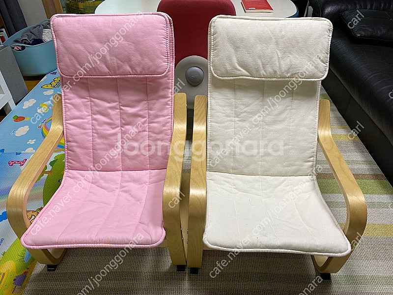 이케아 어린이 암체어 포엥 팝니다.(2개 일괄 판매) 사용감 있습니다. 시트에 얼룩이 좀 있습니다. 사용에는 문제 없으나, 깨끗한 시트를 원하시면 이케아에서 시트만 따로 사서 끼우셔도 될 것 같습니다. 직접 오셔야 합니다. 인천시 부평구 삼산동입니다.