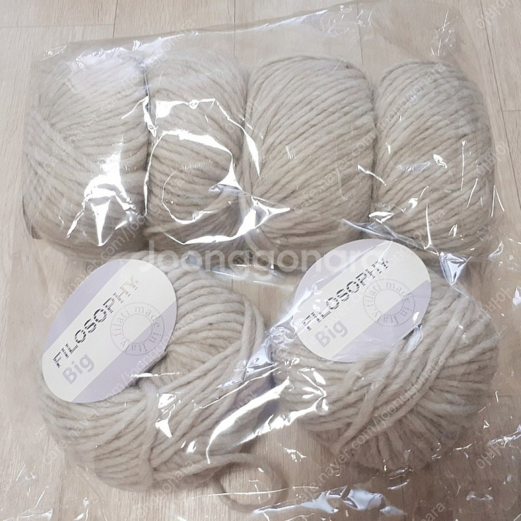 필로소피사의 빅울입니다. 꼬임이 적은 로빙사 계열이며 부드럽고 포근한 촉감입니다. 색상은 연한 베이지이고 바늘은 7.0mm대바늘 사용하면 됩니다. 1볼 50g이고 성분은 알파카20% 메리노35% 아크릴25%입니다. 가격은 1볼 3500 낱개구입가능, 택배비 별도(반값택배가능) 첫번째 사진 편물느낌 참고하세요 구매의사 있으신분 댓글+챗, 쪽지 주세요