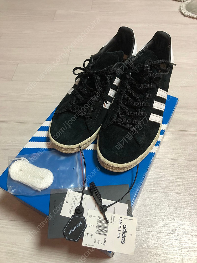 1.제품명: 아디다스 캠퍼스80s 2.사이즈 및 색상: 검정 275 3.제품상태: 10/9 4.가 격(배송비 선불/착불): 100000(착불) 5.연락처 및 판매자 거주지역: 충북 청주 6. 사진 및 기타사항: 실착3회 깨끗합니다