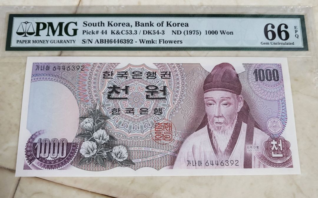 옛날지폐 1차천원 그레이딩66등급