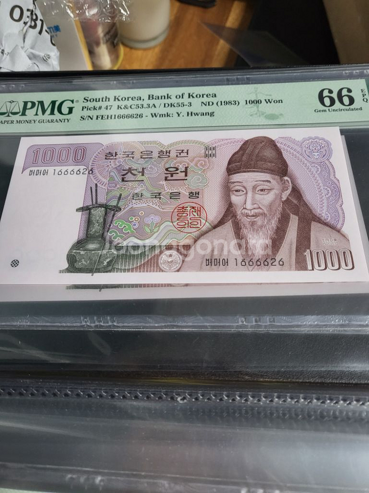 옛날지폐 2차천원 그레이딩66등급