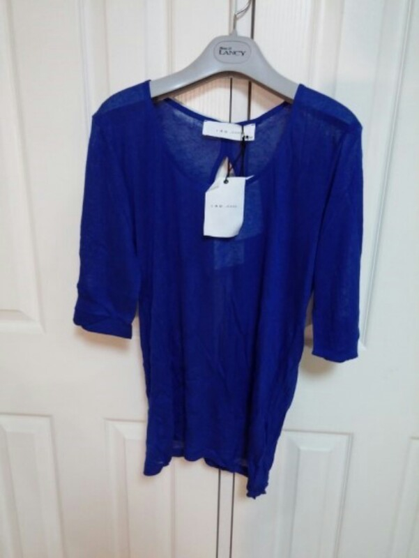 IRO 라운드 블루 얇은 모직 시스루 칠부 니트 55/66사이즈 작게나온 M사이즈 울 37% 기타 라운드 목에 메리야스 짜임의 모직 혼방 얇은 니트 얇게 비칠 정도, 칠부 소매 등이 파져있어 속에 쫄티나 나시 받쳐입어줌 봄부터 여름까지 두루있는 프리미엄 니트 텍까지 있는 새상품 정가 185000원 -> 택포 9만원 교환환불 불가