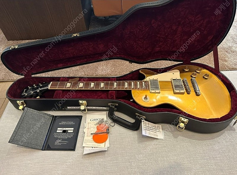 2010년 신품 구입해 1년 정도 사용하고 케이스에 잘 보관해온 '57 골드탑 다크백 리이슈 모델 입니다. 오리지날 57, '58 스팩 두꺼운 넥 아니고 슬림넥 모델인 걸로 알고 있습니다. (요즘은 57 슬림넥 모델이 따로 명시되어 나오는 것 같더군요) 픽업은 현재 Suhr Aldrich Pickup Set로 교환 되어 있고 장착되어 나온 Burstbucker 픽업들은 따로 보관하고 있습니다. 원하시면 픽업 원래대로 교체해서 드립니다. 프렛, 하드웨어 상태 양호하고 일반 연주 기스는 일부 있습니다. (처음부터 gloss 모델은 아니었습니다) 최근 꺼내서 샵에서 셋업서비스 받았구요..다시 기타 시작하면서 레스폴은 시그니쳐 모델만 남겨두려 판매합니다.