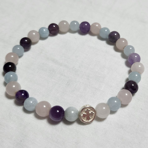 핸드메이드 멀티 원석 팔찌 (블루문스톤/자수정/로즈쿼츠