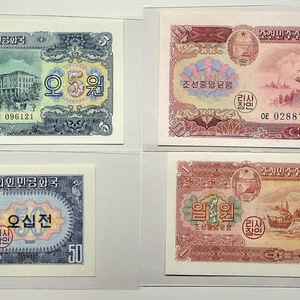 북한, 윗동네 1959년 오리지날 미사용지폐 4종세트