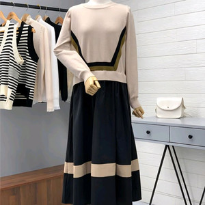 CHOICE 초이스 퀼팅 누빔 니트 배색 롱원피스