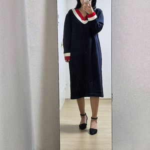 세일러 카라 바스락 배색 니트 원피스 블랙 새상품