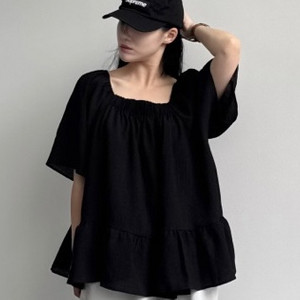 킨더살몬 트위스트 볼륨 슬리브 블라우스